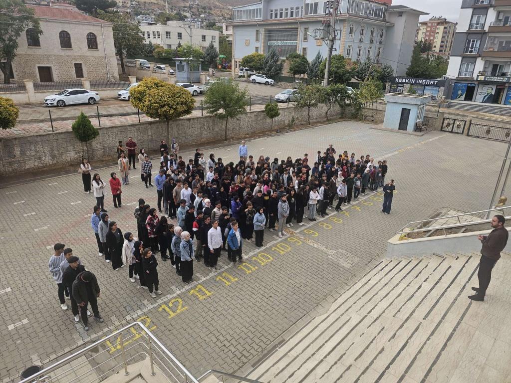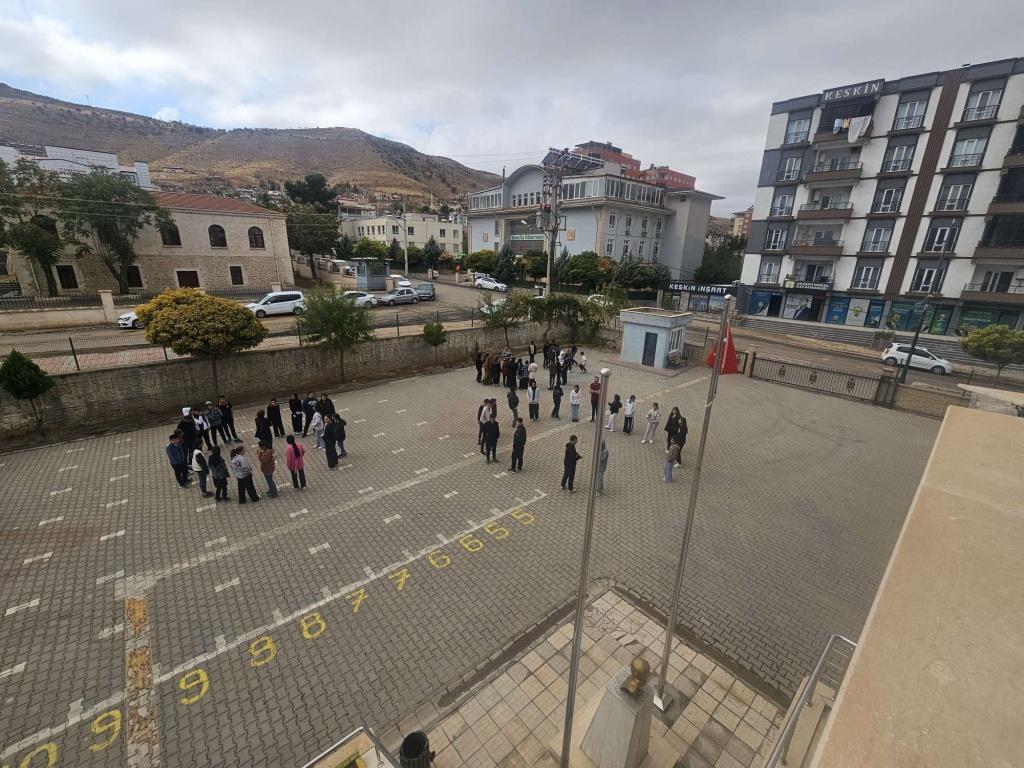 Millî Eğitim Bakanlığı tarafından yürütülen “Yeşil Vatan - Benim Okulum Geleceğe Çare” etkinlikleri kapsamında Ekim ayı “Afetler ve Dayanıklılık Ayı” kapsamında okulumuz Sivil Savunma Kulübü öğretmeni Abdurrahim TUNÇ koordinesinde saat 10:30'da tüm öğrenci , öğretmen ve personelin katılımıyla ilçemizdeki diğer tüm okullarla eş zamanlı bina tahliye tatbikatı gerçekleştirdik..
